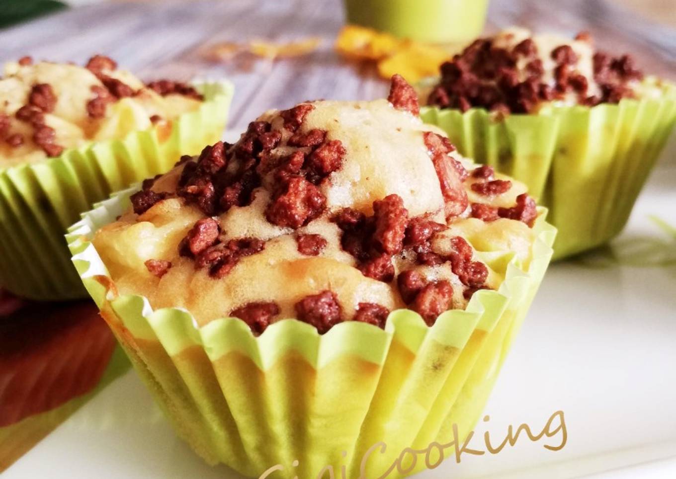 Instructions to make to make Muffins aux pommes et crumble de cookies au chocolat